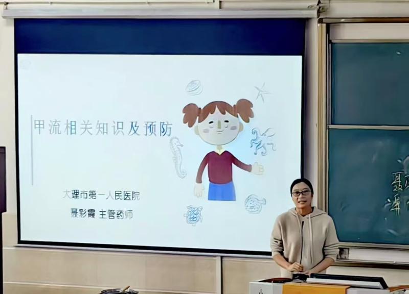 在科普讲座现场,聂彩霞主任以“甲流相关知识及预防”为核心,结合临床一线丰富经验,系统梳理了甲型流感病毒的生物学特性、传播途径及典型临床症状。她通过对比甲流与普通感冒、新冠肺炎的症状差异,借助表格清晰呈现三者在病原体、传染性、发热程度、全身症状等方面的区别,帮助师生们精准掌握鉴别要点。针对甲流的防控与治疗,聂主任重点解读了“早发现、早诊断、早报告、早治疗”的核心原则,详细介绍了奥司他韦、玛巴洛沙韦等常用抗流感病毒药物的适应症、用法用量及不良反应,特别警示了抗生素滥用的误区。她还针对儿童、老年人、妊娠期妇女等高危人群的甲流防护与用药注意事项进行专项讲解,内容兼具科学性与指导性,为师生们构建起系统完整的甲流防控知识体系。